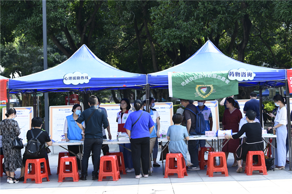 活動(dòng)現(xiàn)場(chǎng),為群眾提供免費(fèi)心理咨詢、心理評(píng)估,擺設(shè)了關(guān)于心理健康、精神疾病的宣傳展板,發(fā)放心理健康宣傳手冊(cè)、新冠肺炎防控漫畫(huà)等,并為過(guò)往群眾免費(fèi)測(cè)量血壓。此外,還設(shè)置了一些趣味游戲如心理健康教育VR體驗(yàn)直通車(chē)服務(wù),愛(ài)心義剪等服務(wù),吸引了周邊居民熱情參與。