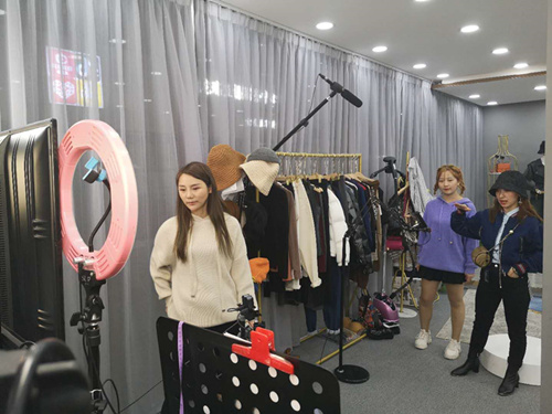 據(jù)了解,龍瑞國際服裝城是該村集體收入的主要來源之一,今年受疫情影響,有7%至8%的經(jīng)營戶退租,不少商戶稱生意難做。為此,龍瑞村委會干部和服裝城領(lǐng)導(dǎo)反復(fù)調(diào)查研究,最后大膽拍板,作出科學(xué)決策:一方面為租戶減輕經(jīng)營壓力,免收物業(yè)管理費共200萬元;另一方面與專業(yè)公司合作創(chuàng)建直播孵化基地,引導(dǎo)、扶持商戶通過直播電商謀求生機。最初,不少商戶對做直播沒經(jīng)驗,信心不足。為消除商戶顧慮,服裝城管理人員親自上陣,在各大平臺開設(shè)賬號試播,總結(jié)經(jīng)驗后再向廣大商戶推廣。此外,與專業(yè)機構(gòu)合作,不定期舉辦免費培訓(xùn)班,向商戶傳授直播知識。一些商戶在檔口搭起了直播架,一邊線下批發(fā)一邊線上直播銷售,營業(yè)收入出乎意料地水漲船高起來。嘗到了甜頭的商戶們,開始各出奇招,紛紛重視起直播來。