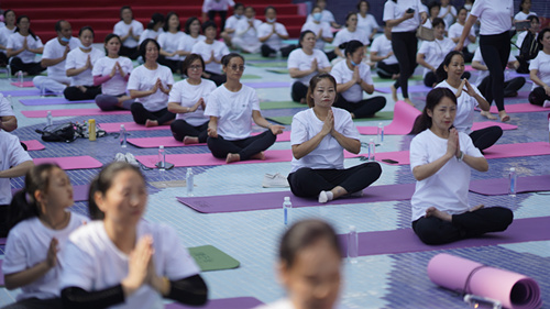 在此次瑜伽公益匯演上,兩百多名伽人們在臺上臺下俯身挺胸大秀好身材,各種各樣的高難度姿勢,展示了瑜伽的超凡魅力,將全民修身運動融入到身態(tài)美、儀容美、心靈美的瑜伽運動之中,讓觀眾嘆為觀止。