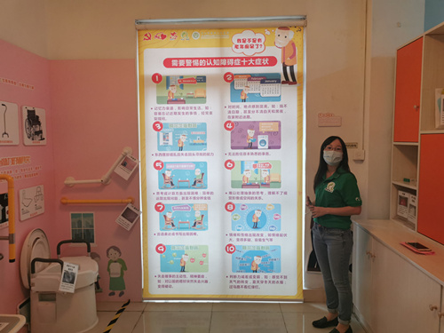 在知識(shí)教育區(qū),通過KT板海報(bào)、漫畫等方式,圖文結(jié)合,講述了認(rèn)識(shí)障礙的種類和病程、需要警惕的認(rèn)知障礙十大癥狀等醫(yī)學(xué)常識(shí),展示認(rèn)知障礙老人可能運(yùn)用到的醫(yī)療輔具等,讓老人對(duì)該病有一個(gè)直觀的初步認(rèn)識(shí),提醒老人可以留意自己的身體狀況和身邊人的身體癥狀。而在運(yùn)動(dòng)手指操體驗(yàn)區(qū),通過設(shè)置兩套手指操,帶動(dòng)一些在初篩有認(rèn)知障礙傾向或基本確診的認(rèn)知障礙老人,通過身體鍛煉減緩病情的惡化。