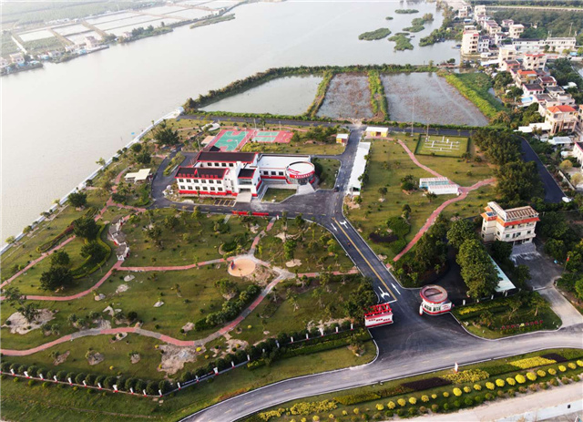 進(jìn)入公園大門(mén),最先吸引人的就是紅白色調(diào)的新合村黨群服務(wù)中心。新合村原黨群服務(wù)中心位置偏僻、交通不便、場(chǎng)所較小,無(wú)法滿(mǎn)足群眾的需求。為強(qiáng)化政治功能和服務(wù)功能,坦洲鎮(zhèn)黨委圍繞實(shí)體化、功能化、標(biāo)準(zhǔn)化、規(guī)范化、信息化要求,高標(biāo)準(zhǔn)建設(shè)了全新的新合村黨群服務(wù)中心。按規(guī)范建設(shè)的“一廳五室”中,最特別的是辦事大廳,這是一個(gè)形如“同心園”的圓形玻璃大廳,體現(xiàn)了“黨員群眾同心,共治共建家園”的設(shè)計(jì)理念。至于便民服務(wù)活動(dòng)室,則增加了投影等電子設(shè)備,此外還有鄉(xiāng)村振興服務(wù)室、咸水歌傳承中心、黨群會(huì)議室等。