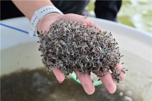 雖然是同時出孵,但是體型大小肯定不一樣,而購買蝦苗按照每只固定單價計算,只數一次,就按照比例稱重,為什么客戶愿意呢?現場有人發(fā)出疑問。梁家洪笑而不語,抓起一把蝦苗,讓大家仔細觀察,隨后記者發(fā)現了其中的緣由,該批蝦苗體型、大小幾乎一致。