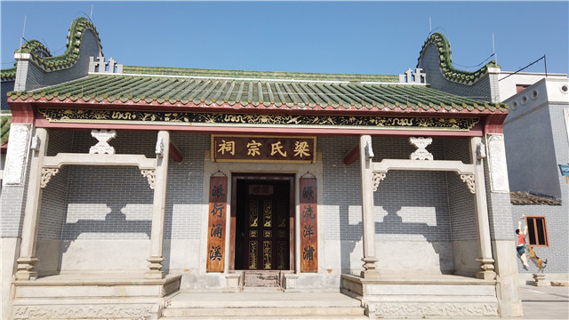 新修建的廣場(chǎng)依然維持著古韻,翻新的梁氏宗祠前,淡灰泛青的地面鋪砌得整齊有序,祠堂前的池塘中粉紫色睡蓮次第綻放,為冬天增添了一抹亮色,水波粼粼里依稀窺見飛檐翹脊。