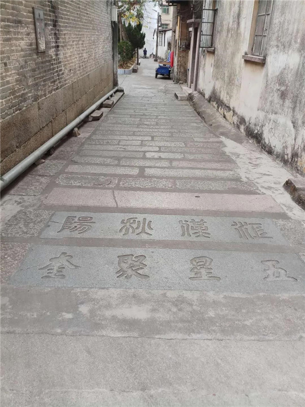 小城的東面,蓮峰新村的盡頭,有一條村子叫柏椏,里頭有條柏椏直街,在東岳廟西側(cè)的那一段,有兩塊0.52x2.23米的石刻被放置在街中央,作鋪路石使用,每天人來人往,車來車往,在上面步過,或碾過……