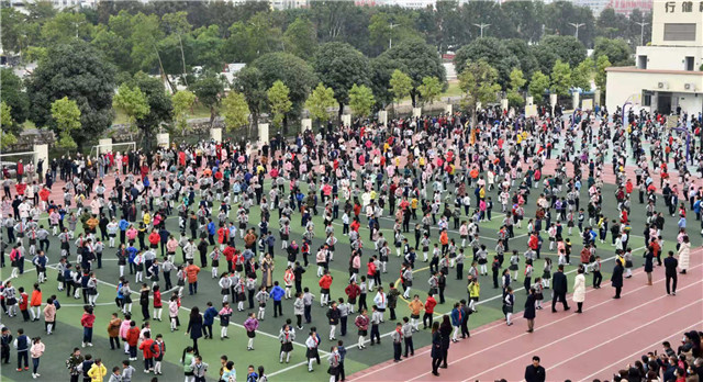 大課間期間,雖然天氣寒冷,但歡快的音樂一響起就讓操場沸騰起來了。