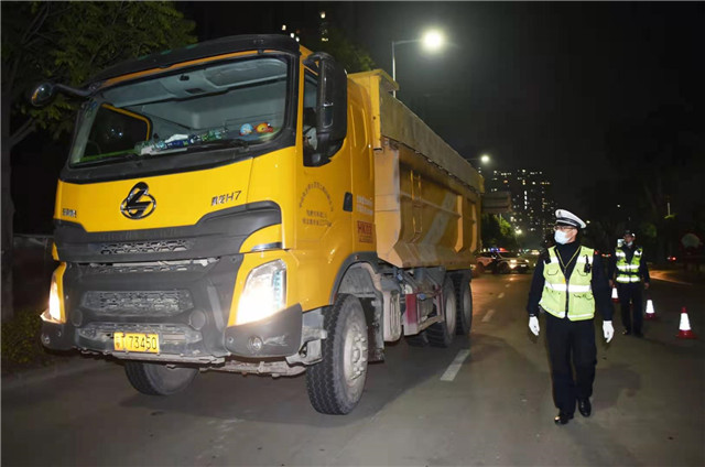 “請出示您的駕駛證、行駛證和通行證?!眳⑴c聯(lián)合執(zhí)法的交警對工程車駕駛員說,交警此次重點檢查工程運輸車輛是否超載、是否有“光頭胎”、是否具備反光標識,同時也提醒工程運輸車輛要提高安全意識,做到規(guī)范運輸、合法運營。