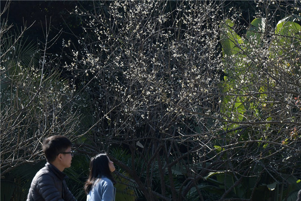 1月2日,孫文紀(jì)念公園里的梅花已經(jīng)在枝頭悄然綻放。