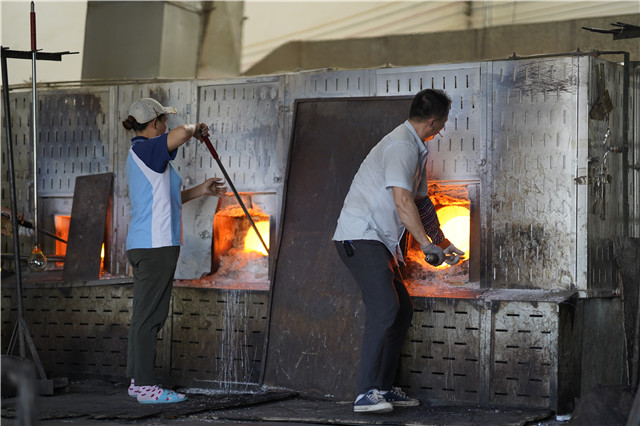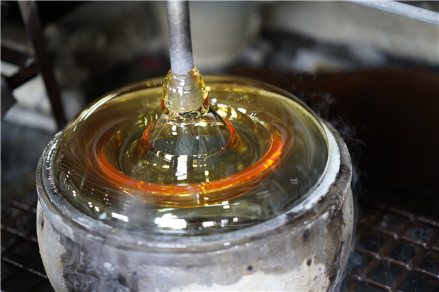 一團團玻璃液原料落入溫度高達1500℃的坩堝爐,滾燙的熱浪翻來覆去碾壓著空氣,讓人仿佛瞬間來到仲夏,與室外的寒冷分明兩個世界——在生產(chǎn)車間,從事傳統(tǒng)玻璃吹制工作的工人,每天都要這樣在超過40℃的高溫環(huán)境下作業(yè)。