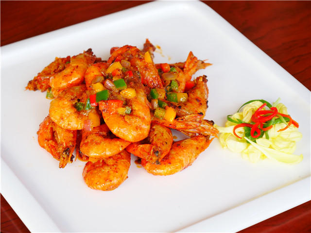 牛油起鍋,將切好的青椒、紅椒、洋蔥丟入鍋中,加入調(diào)好的秘制醬料,倒入椰奶,不斷翻炒。醇香的牛油,加上秘制醬料,最后倒入椰奶中和,三者結(jié)合,飄香四溢。最后將炸好的蝦倒入鍋中爆炒。炒至入味,盛出擺碟。
