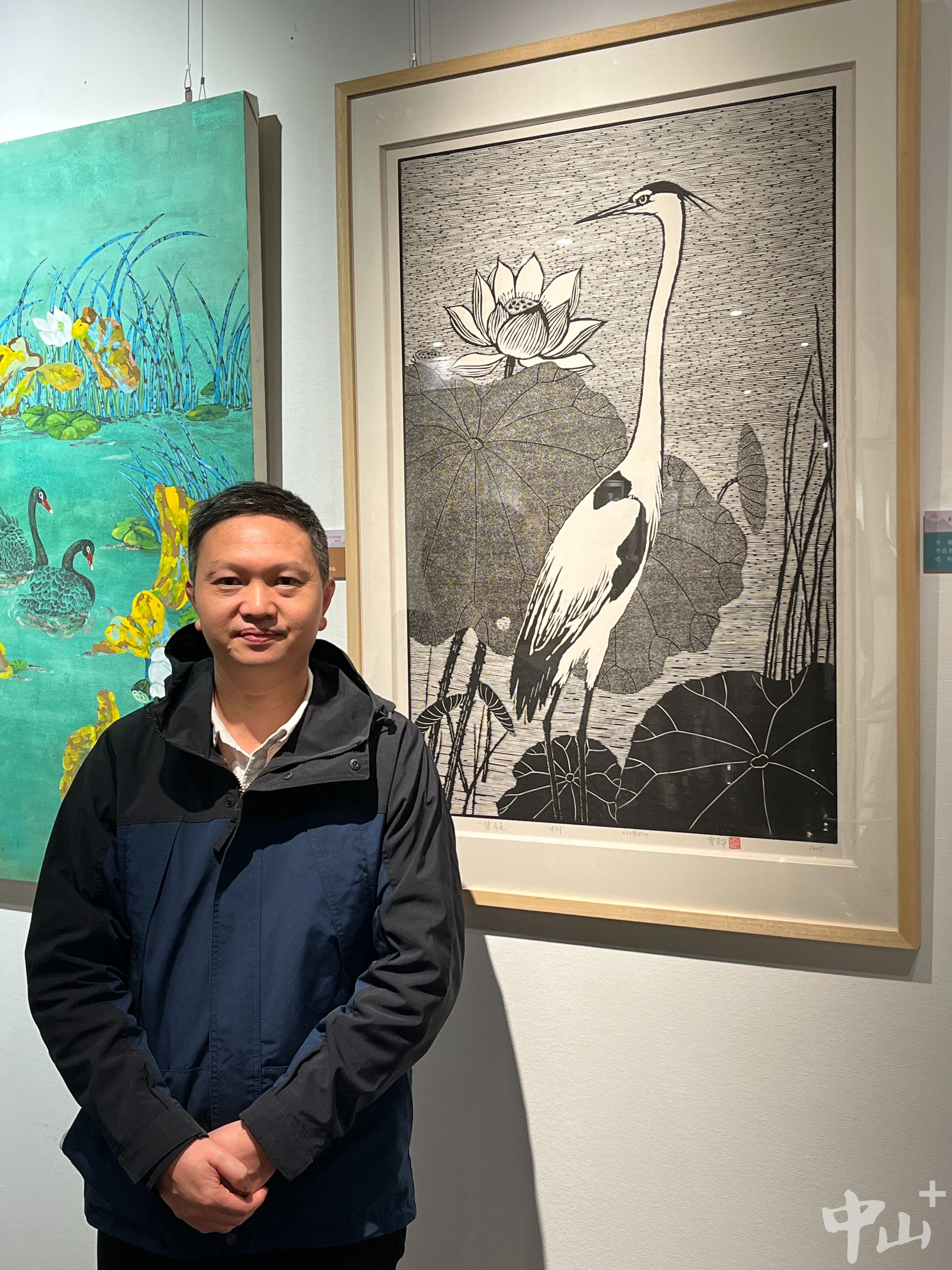 中山市婦女兒童活動中心美術(shù)教師賀榮華的作品《一鷺清廉》榮獲美術(shù)專業(yè)組優(yōu)秀獎。他分享創(chuàng)作心得:“本次獲獎作品的靈感源于在中山崖口采風(fēng)期間,我將白鷺的清逸與荷花的高潔融為一體,特意以‘一鷺清廉’為題,通過木刻版畫獨(dú)特的黑白語言,具象化傳達(dá)‘清廉’這一深厚的文化精神,詮釋‘黑白分明、清清白白’的價(jià)值追求?!?/p>