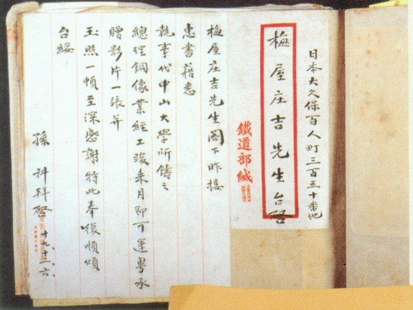 孫科因梅屋莊吉鑄贈(zèng)孫中山銅像事致梅屋感謝函