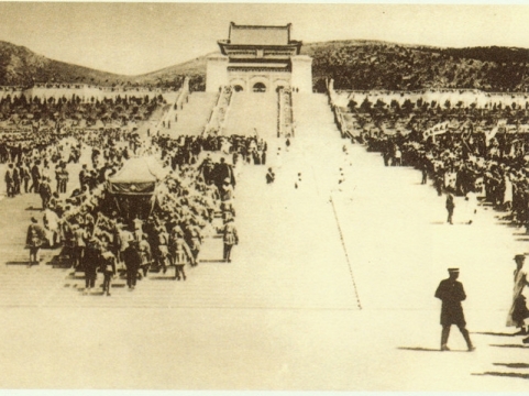 1929年3月10日,梅屋莊吉以自己和萱野長(zhǎng)知等人的名義在孫中山靈柩前敬獻(xiàn)的花圈的照片